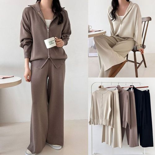 H스타일(SET)니트자수후드세트 봄 여성 트레이닝복세트 츄리닝셋트 바지셋업 빅사이즈 홈웨어