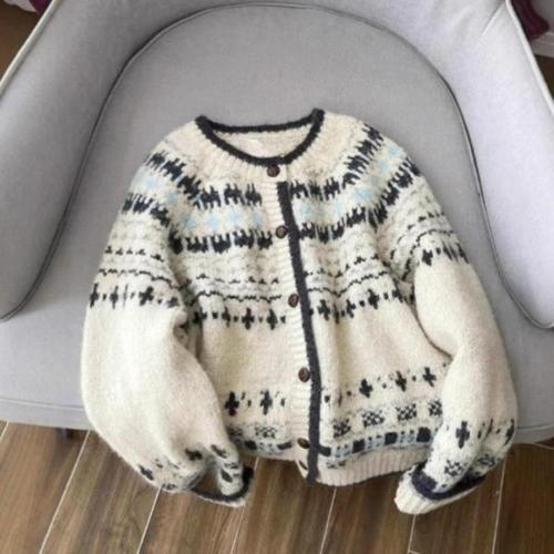 [다잇템][다잇템] 여자 스웨터 빅사이즈 U넥 패턴 가디건_24422691_588872