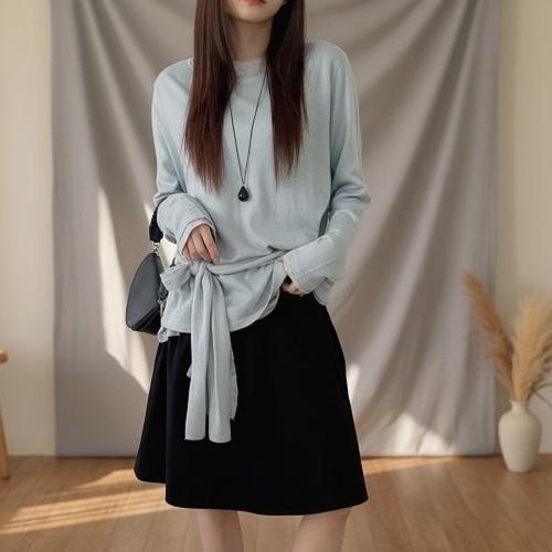 [허밍퍼플]여성용 1301-메건 라운드 캐시미어 빅사이즈 긴팔 니트티 겨울 심플 단색 무지 빅언니 여성의..