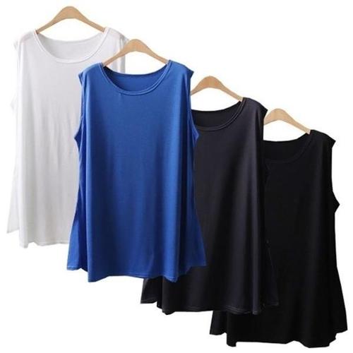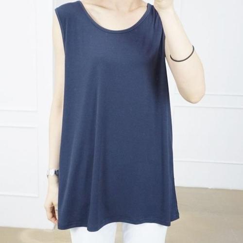 [유야]면 무지 라운드 레이어드 롱 나시 민소매 티셔츠 -SL0001H- 빅사이즈 루즈핏 여성 여름