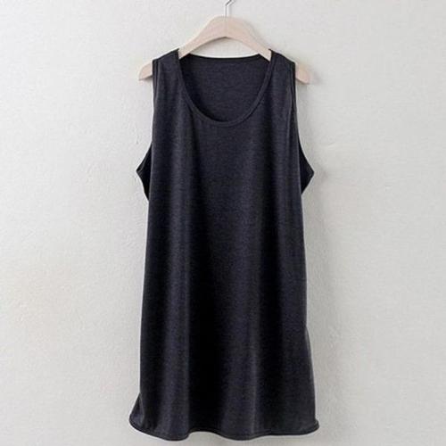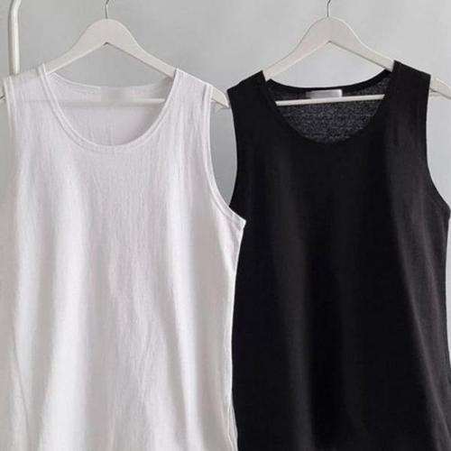 빅사이즈 루즈핏 언발 민소매 롱나시 티셔츠 GRM1007