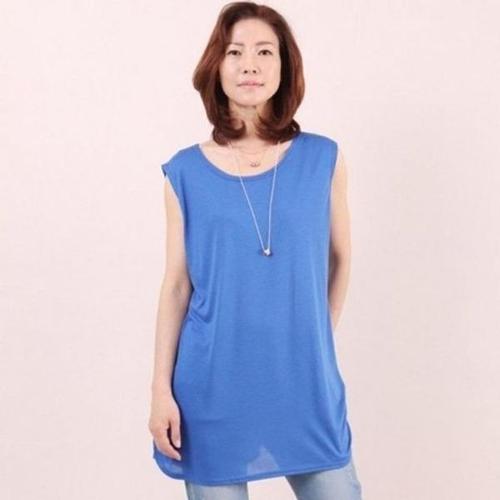 빅사이즈 여성의류 레이어드 20수 이너 롱 나시 민소매 옆트임 티셔츠 오버핏 루즈 봄 여름 사계절 66-110 size