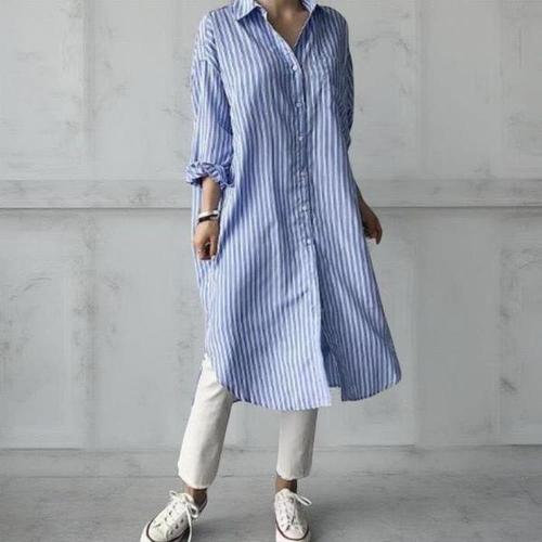 [다잇템_패션]여성 빅사이즈 파란색 단가라 베이직 롱셔츠