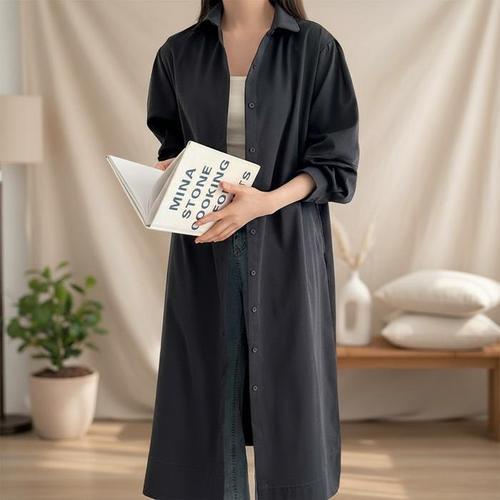 [다잇템]여성 빅사이즈 SS 시원한 롱슬리브 코튼 롱셔츠