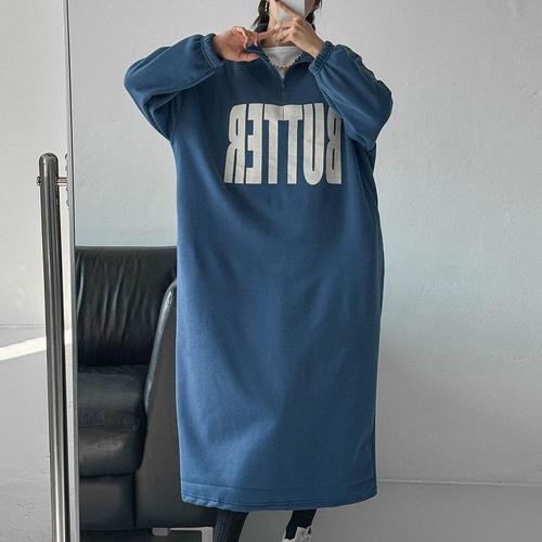 [옷자락]여자 빅사이즈 반집업 빅레터링 기모 임부복 롱원피스