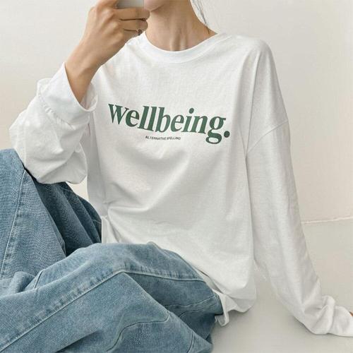 [미라클세븐]여성 빅사이즈 레터링 긴팔 박스 티셔츠 간절기 롱티