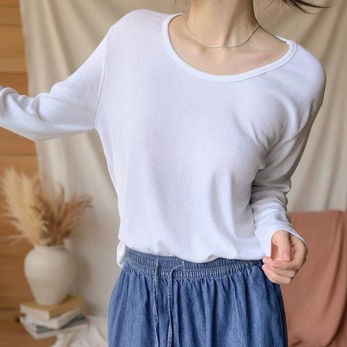 [다잇템]여성 코디 빅사이즈 롱슬리브 U넥 티셔츠 (45904509)