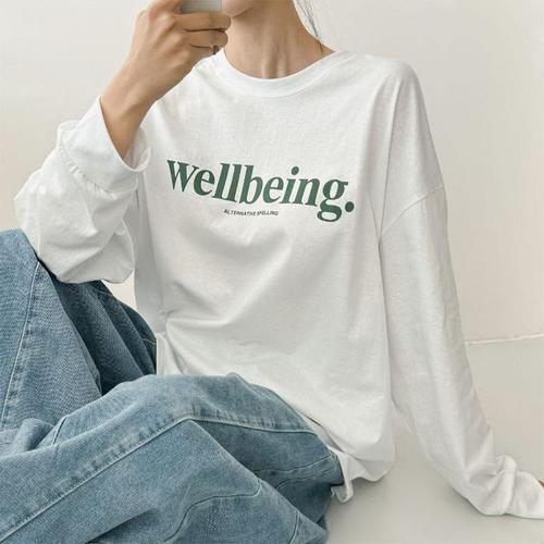 [신상오픈런]여성 빅사이즈 레터링 긴팔 박스 티셔츠 간절기 롱티 (45899588)