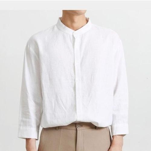 [아날로이드]남자 헨리넥 린넨셔츠 여름 빅사이즈 마셔츠 무지남방_AST12