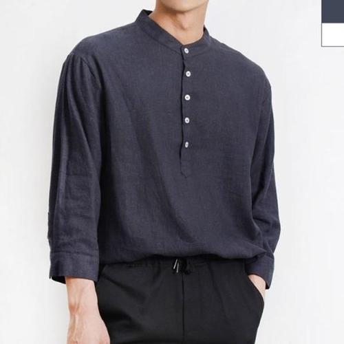 [아날로이드]남자 헨리넥 7부 린넨셔츠 여름 빅사이즈 마셔츠 남방_AST13