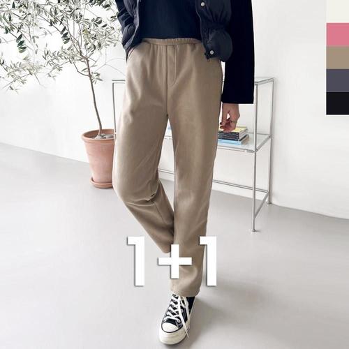 (매진 임박) 1+1 여성 기모 트레이닝 도톰한 조거팬츠 팬츠 가을 겨울 편한 하이웨이스트 허리 밴딩 플리스 캐쥬얼 슬렉스 심플 데일리 부드러운 베이직 따뜻한 아웃도어 방한 바지