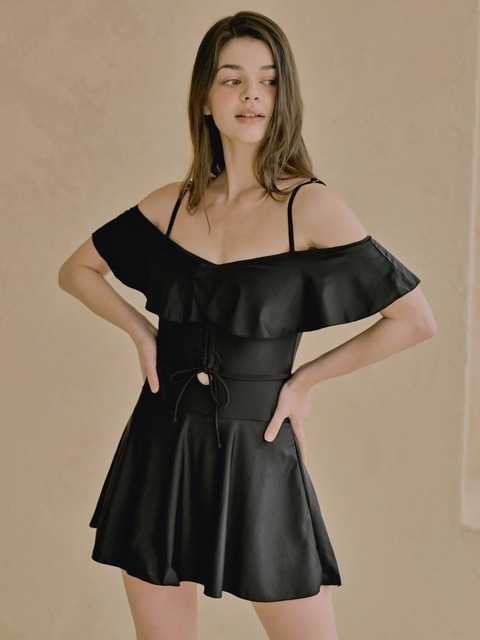 아레나 여아동수영복 스티커 아동 4부 반신 크로스백 A5BG1GL01BLK