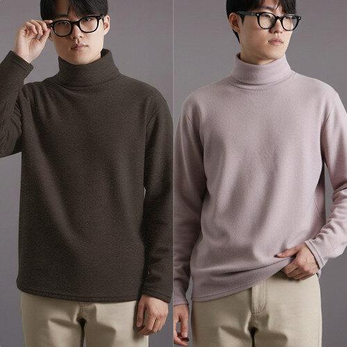 JUSTFEELING 1+1/2벌 남성 목폴라 기모 니트티 따뜻한 겨울 순색 이너티 빅사이즈 M-5XL옵션 보온 융털안감 스웨터 상의