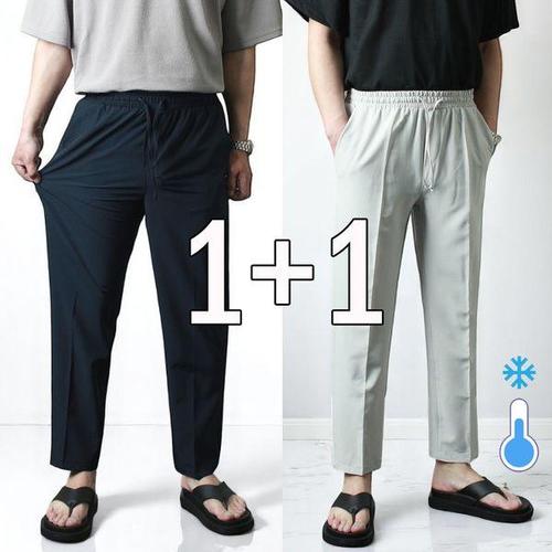 [쿼터]1+1 냉장고 바지 아이스 쿨 냉감 남자 빅사이즈 스판 밴딩 팬츠 여름 슬랙스 S-6XL