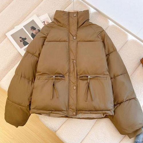 BIKASU 여성 캐주얼 노카라 경량 숏패딩 오리털 빅사이즈 패딩 겨울 점퍼 아우터
