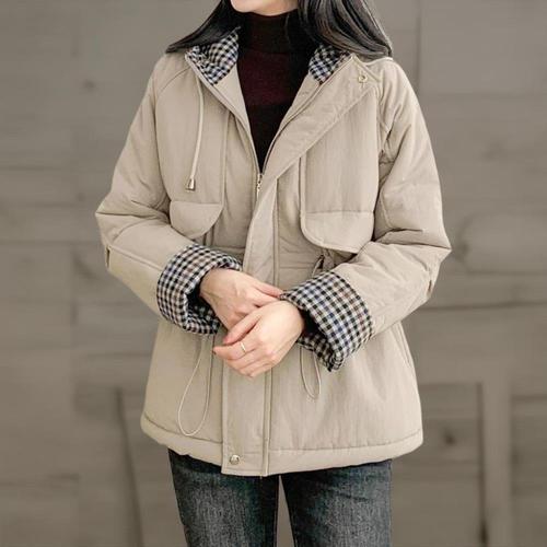 [신상오픈런]여성 빅사이즈 체크배색 후드 집업 사파리 점퍼 (44660052)