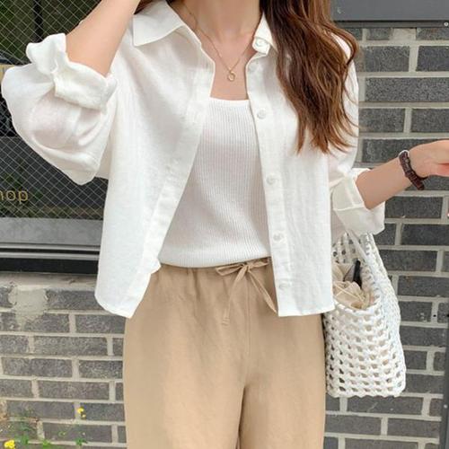 [플로렌][빅사이즈] 여름 긴팔 블라우스 가디건 린넨 카라 긴팔자켓