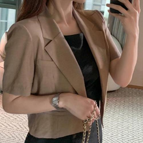 Makone 여성 여름 데일리 반팔 투버튼 자켓
