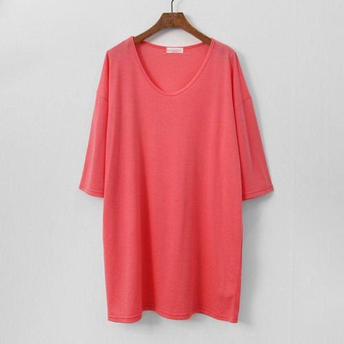 여성 모달 라운드넥 옆트임 롱 반팔 티셔츠 빅사이즈 8가지 컬러