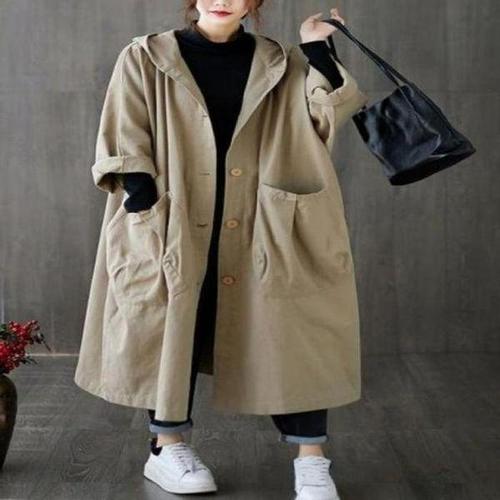 [셀러허브_여성트랜드패션]ONM 겨울스타일 빅사이즈 바람 후드 롱 코트 막이 점