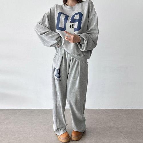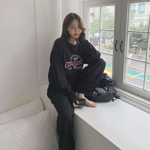 [옷자락]여자 빅사이즈 트임 박시핏 긴팔티 츄리닝 바지 세트