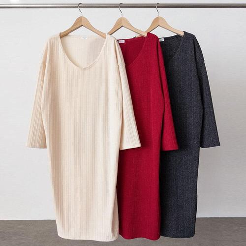 [미라클세븐]빨간색 롱원피스 여성용 오프숄더 빅사이즈 골지 디자인 밑트임