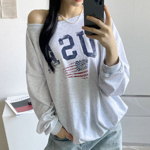 [신상오픈런]여성 오프숄더 맨투맨 빅사이즈 루즈핏 무채색 티셔츠