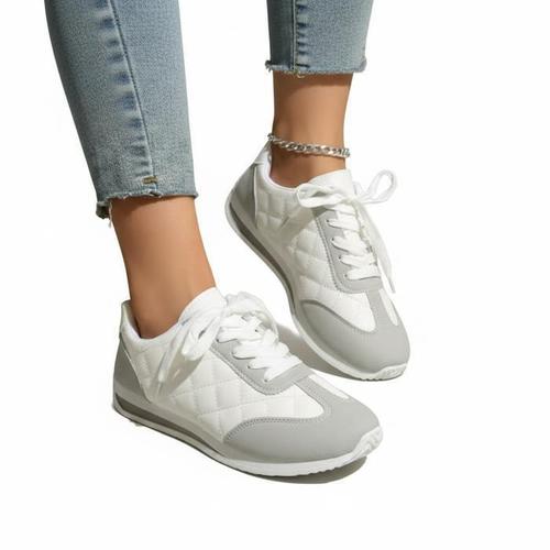 [신상오픈런]여성용 스타일리시 퀼팅 가죽 배색 빅사이즈 운동화 (46204115)