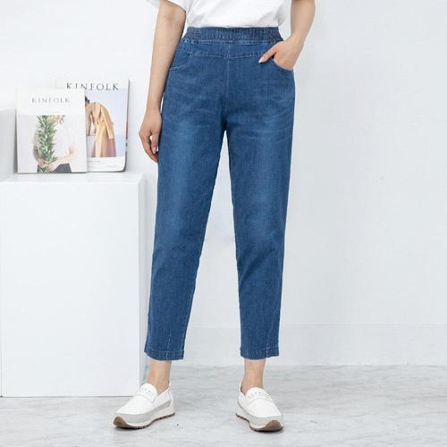 [모슬린]엄마옷 면 밴딩 청 배기바지 613FGH402 마담/중년여성/빅사이즈/50대/60대