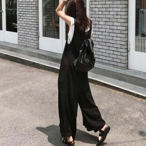 [유야]허리스트링 나시 와이드 점프수트 멜빵바지 점프슈트 -JS0025H- 빅사이즈 루즈핏 여성 봄