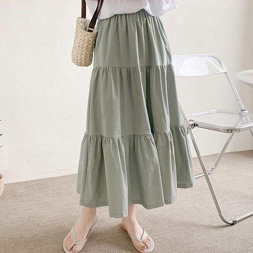 (2size/66-130) 플레지 빅사이즈 풍성한 코튼 밴딩 스커트 플레어 프릴 봄 롱치마 6XL
