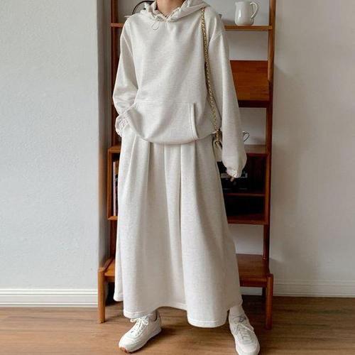여성 가을 겨울 도톰 롱 스커트 모직 치마 빅 사이즈 데일리룩 루즈핏 밴딩 모직 스커트