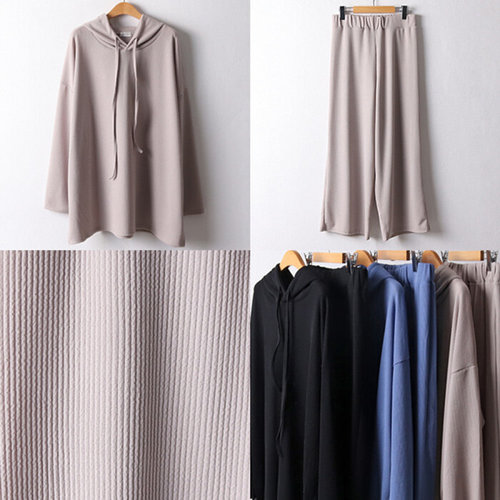 빅사이즈 츄리닝 니트셋업 가을겨울 레이어드 긴팔티 와이드 팬츠 상하세트 투피스
