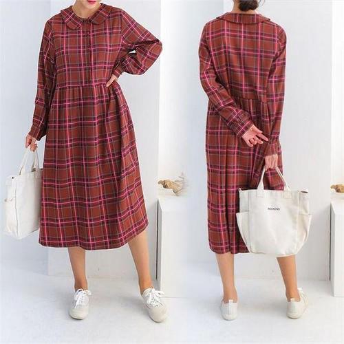 [셀러허브_여성트랜드패션]위쉬몰 WB 타탄플랫퍼프롱원피스(B205H010) 빅사이즈
