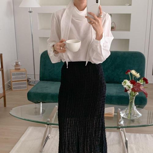 [신상오픈런]여성 시스루 롱 블라우스 봄 하객 패션 빅사이즈 스카프