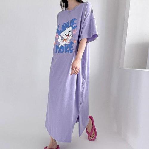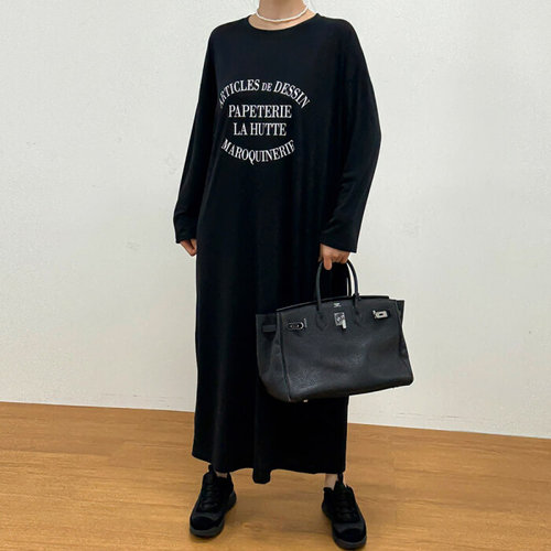 [끌레아]루즈핏 뒤트임 롱원피스 빅 레터링 캐주얼 빅사이즈 원피스 블랙 화이트 옐로우