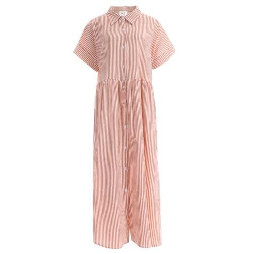 [샵앤]빅사이즈 여성 카라넥 단추 오픈 3부소매 스트라이프 롱 원피스 RC-WDR-1500-인디핑크