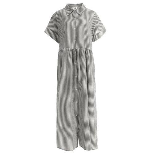 [샵앤]빅사이즈 여성 카라넥 단추 오픈 3부소매 스트라이프 롱 원피스 RC-WDR-1500-차콜