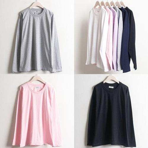 [OF4N37SS]빅사이즈 30수라운드긴팔티 베이직 심플 여성