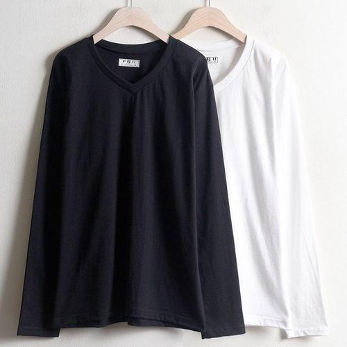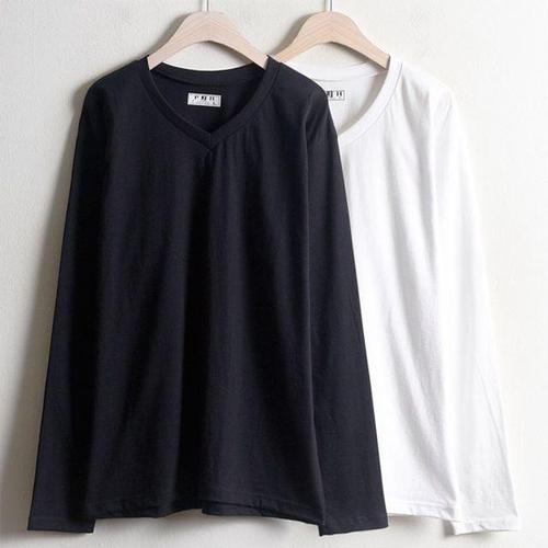 빅사이즈 30수브이넥긴팔티 W035 기본 무지 데일리 (W9D69FD)