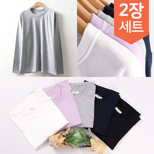 2장set 빅사이즈 30수 라운드 긴팔 티셔츠 1+1 세트