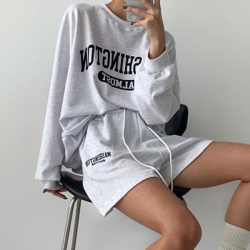 [옷자락]여자 빅사이즈 레터링 긴팔티 3부 밴딩 반바지 세트