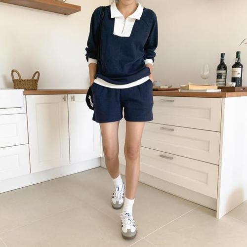 [옷자락]여자 맨투맨 3부팬츠 FW 하프집업 빅사이즈 실내복 세트