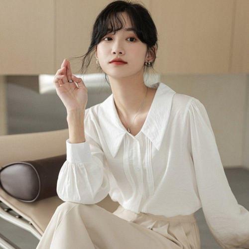 [오너클랜]인기상품 실크 소재 여성용 심플 빅카라 블라우스 [WFLLBDK_260304]