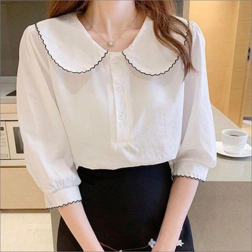 [오너클랜]인기상품 여성용 빅카라 7부 물결 디테일 블라우스 [WFLKWYX_260304]