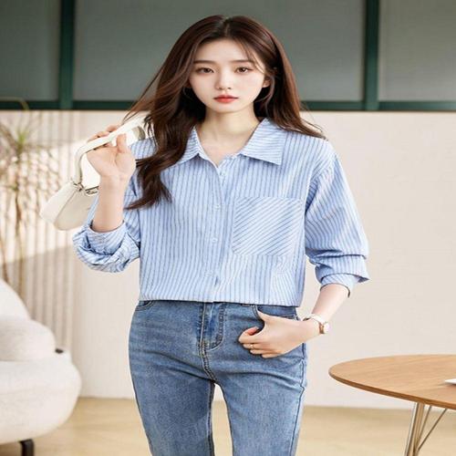 [오너클랜]인기상품 여자 소라컬러 빅카라 스트라이프 블라우스 셔츠 남방 [WFGNKWF_260227]