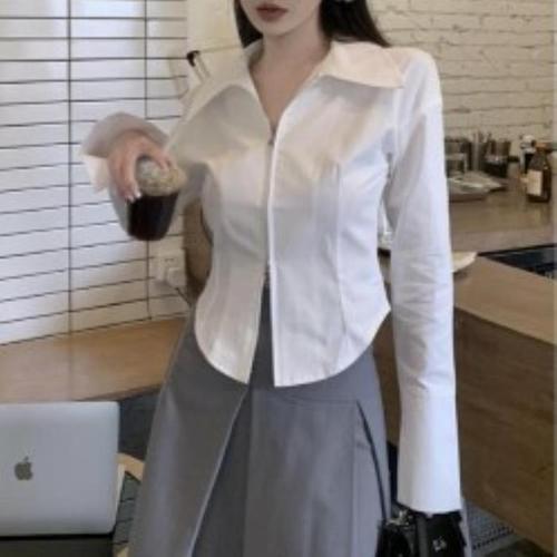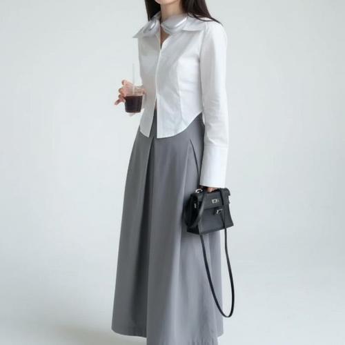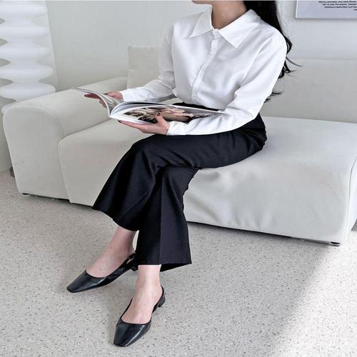 어반룩북 오피스룩 긴팔 소매 포인트 기본 이너 크롭 셔츠
