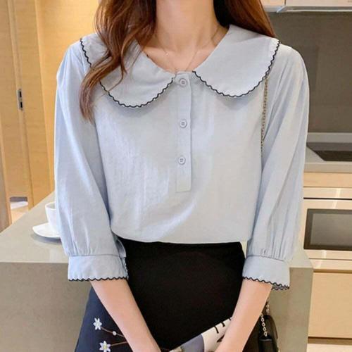[오너클랜]인기상품 여성용 여름용 빅카라 7부 셔츠 오피스 블라우스 [WFLIFCN_260301]