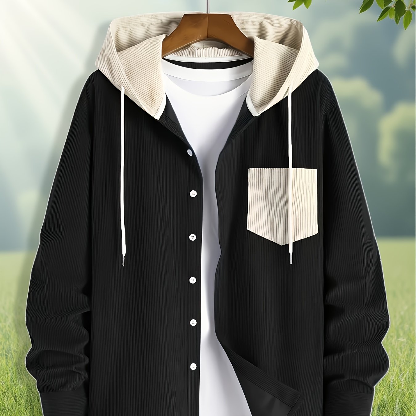 TEMU 남성용 코듀로이 컬러 블록 후드티. 가을, 겨울에 적합한 다재다능하고 패셔너블한 대학 스타일. 데일리 캐주얼 웨어, 파티 등에 적합. 신상 후드티. 친구 및 가족에게 생일 선물로 주기 좋습니다.