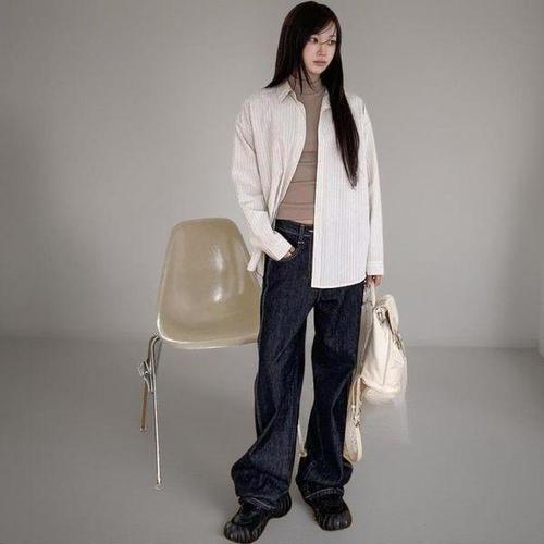 [엄지척]여성 데일리 루즈한 실루엣 빈티지 진청남방 데님셔츠_19650486_667501
